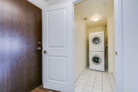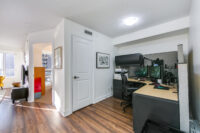 Bright & modern throughout with floor-to-ceiling windows flooding the space with natural light. Open concept kitchen with stainless steel appliances, full height cabinetry, granite counters & breakfast bar. The main living space boasts wide plank laminate flooring and a walk-out to the balcony. Primary bedroom with double closet. The good-sized den makes working from home a breeze. Walk-in laundry room is a rarity! Parking included.
